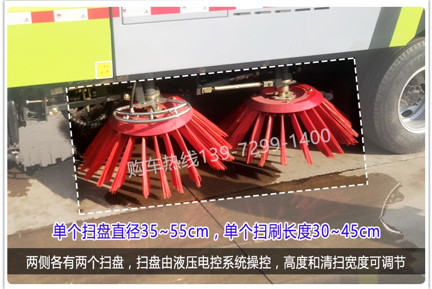二、上裝配置: 標(biāo)配掃盤4把;掃盤轉(zhuǎn)速實(shí)現(xiàn)獨(dú)立3檔調(diào)速;大力馬達(dá);施耐德控件開關(guān);臺灣液壓閥;皖液液壓油泵;新西山水泵;免維護(hù)自分離式離合器;免維護(hù)風(fēng)機(jī);不銹鋼水箱;不銹鋼垃圾箱;尾部LED箭頭燈;手動泵應(yīng)急系統(tǒng);前掃刷臂轉(zhuǎn)動機(jī)構(gòu)使用高新耐磨工程隔套,免打黃油;精密冷彎無縫液壓油管。