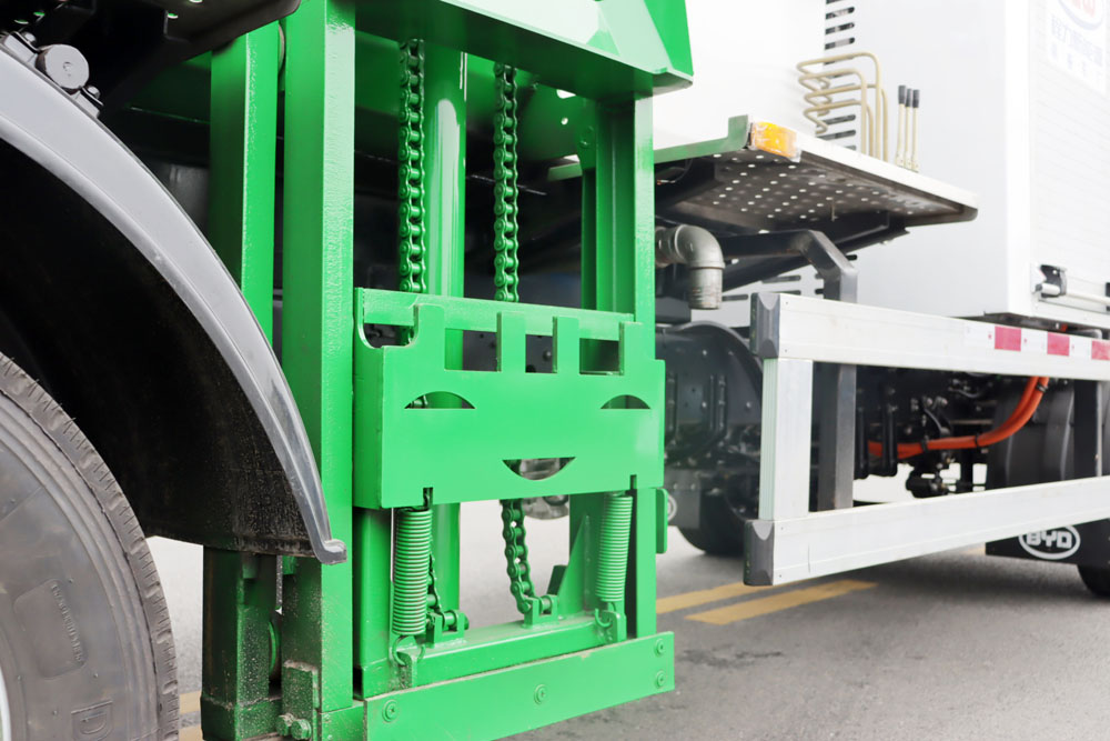 - 底盤電機直接取力,專車專配,完美匹配,無取力器,比柴油車更節省步驟、故障率更低。