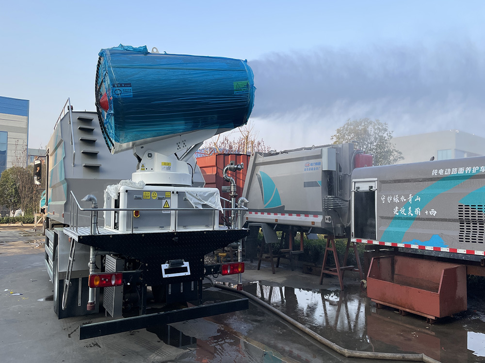 - 霧炮機組直接由底盤電池提供動力,沒有副發電機組,比傳統柴油車更節能,大大降低噪音污染。
