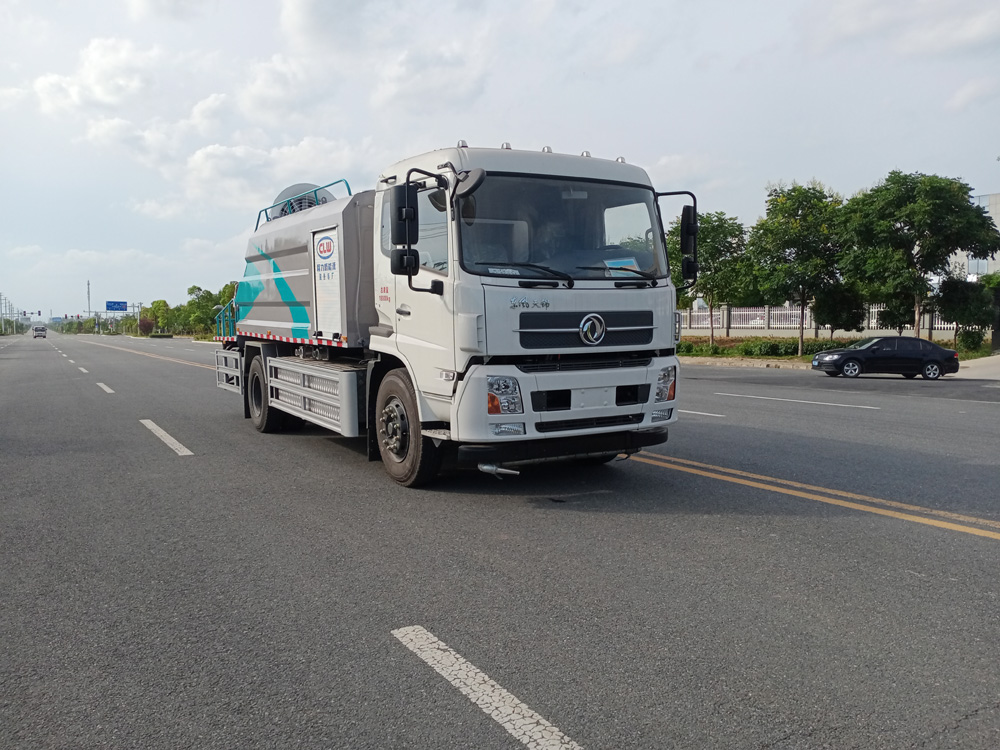 四、其他說明: 東風天錦純電動抑塵車車是在純電動二類底盤的基礎上,加裝低壓沖洗、灑水系統、霧炮機組,由機械、液壓(氣路)、電器三部分合為一體的專用灑水作業車。工作原理:采用自吸式雙級離心泵,效率高、灑水寬度大、水槍射程遠,低壓水泵由底盤變速器取力器通過傳動軸直接傳動。霧炮機組由底盤電池帶動霧炮風扇電機、不銹鋼多級離心泵,進行噴霧降塵工作。