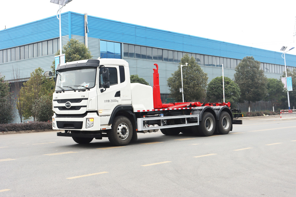 一、底盤配置: 采用BYD1250DELBEVD車身,配置玉柴BYD-3425TZ-XS-A發動機140/190馬力,國六排放標準,軸距5100+1350(mm),整備質量14.51噸,額定載質量10.36噸,五擋變速箱,帶動力轉向,帶原廠空調,該車上黃牌,城區道路請注意限行標識。