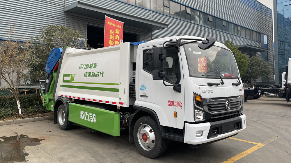 四、其他說明: 東風凱普特純電動壓縮式垃圾車,該車裝備有垃圾箱體,液壓機構(gòu)及垃圾裝填器,用于將垃圾自行壓實裝入,轉(zhuǎn)運和卸料功能;