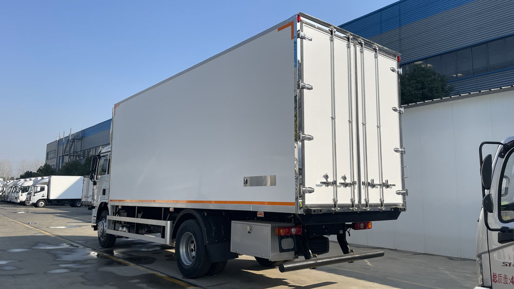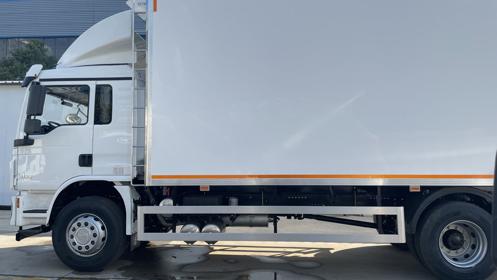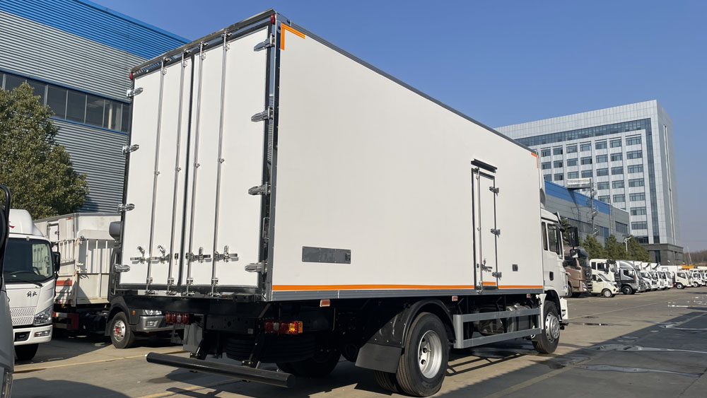 SHACMAN陜汽德龍8米冷藏車可在廂體頂部選裝軌道肉鉤、及在廂體底部選裝T型通風槽