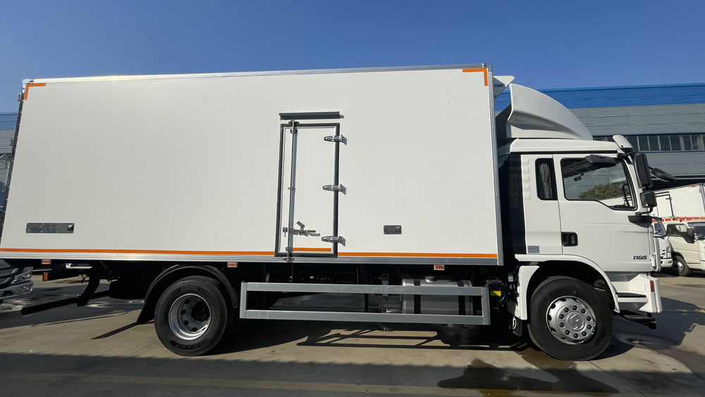 四、選裝配置:可選裝導軌肉鉤、T型通風槽、右側開側門、溫度實時監控帶打印裝置,運輸海鮮廂體內部須選用不銹鋼材質,可選裝外接電源220V-380V(車輛熄火后,通過外接電源進行制冷)。