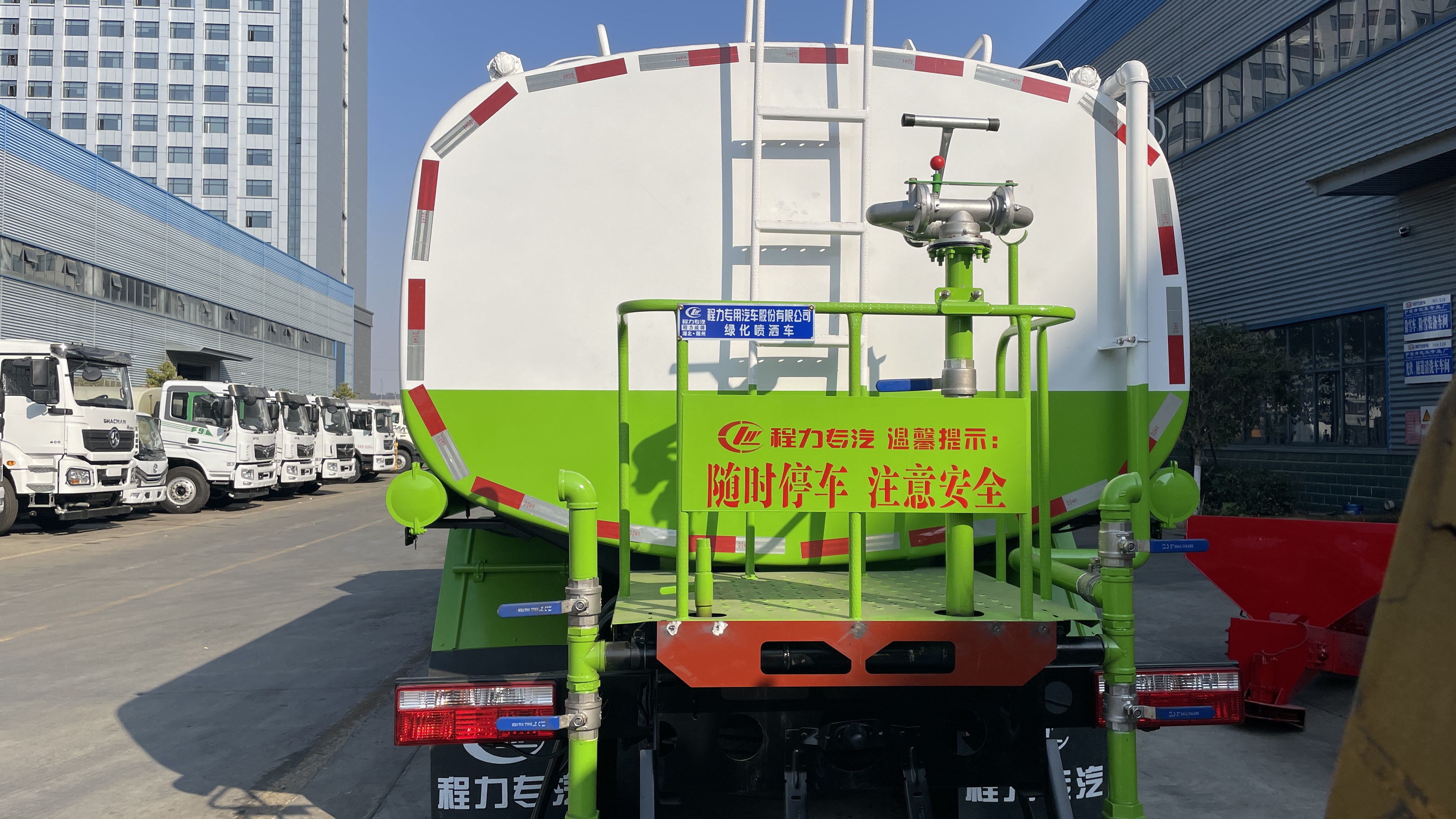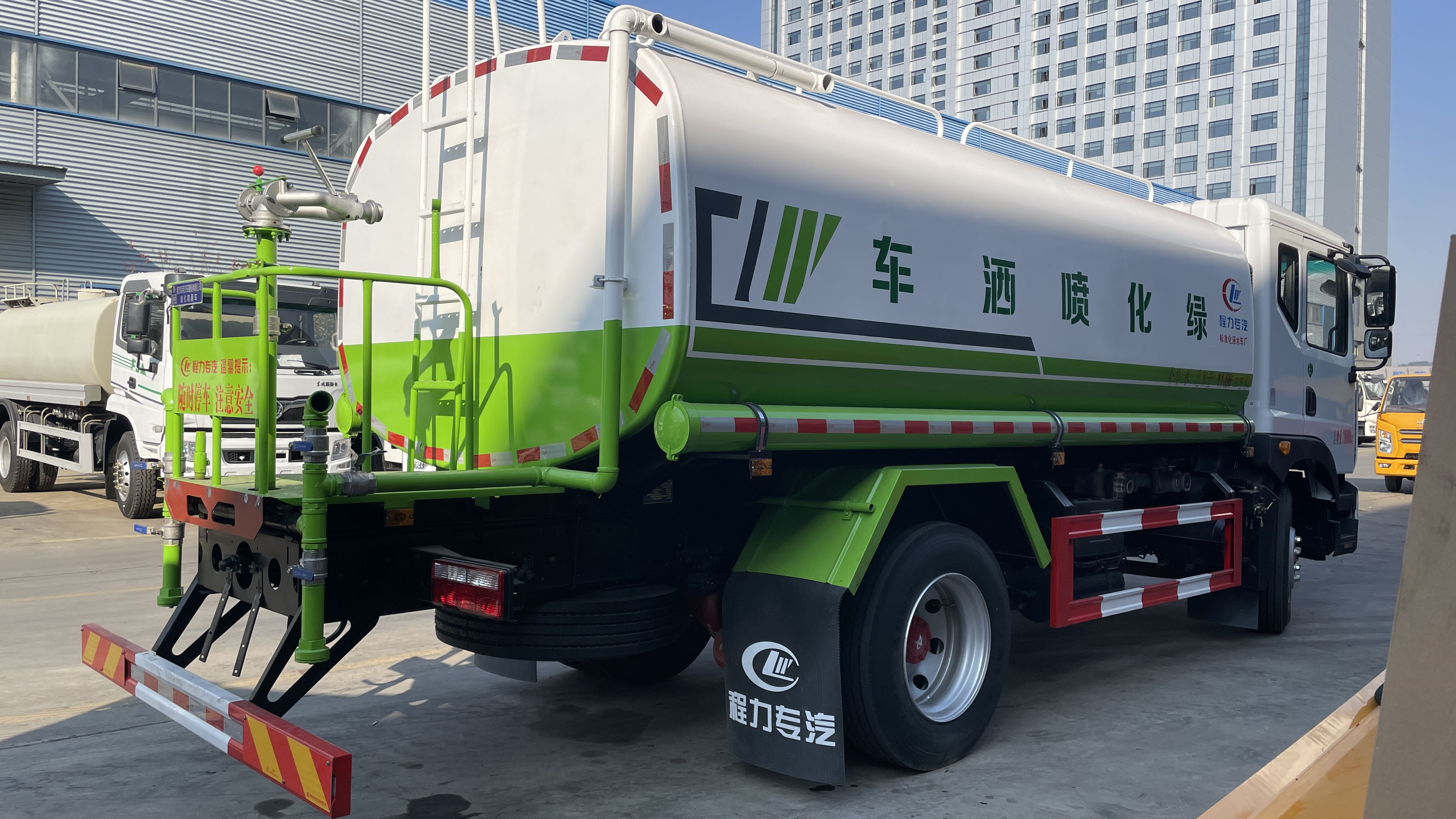 四、其他說明: 大容量:罐體有效容積可達 11.66 立方米,能夠儲存大量的水,減少了加水次數,提高了灑水作業的效率,特別適合大面積道路沖洗、綠化灌溉等長時間、大面積的灑水作業需求. 材質優良:罐體采用 Q235B 碳鋼等優質鋼材制作,強度高、耐腐蝕,能夠承受一定的壓力和沖擊,延長了罐體的使用壽命,確保在長期使用過程中不會出現漏水、變形等問題. 防波隔板設置:罐體內每隔 1.5 米左右設置一道防波隔板,可有效減少車輛行駛過程中水流對罐體的沖擊,防止水的晃動對車輛行駛穩定性產生影響,同時也降低了水流對罐體的腐蝕,提高了