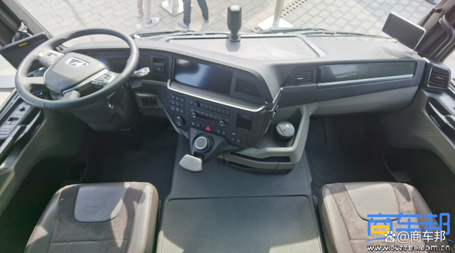 TGS 26.470 6×2-4采用工程車最常見的窄體平頂駕駛室,沒有做改裝處理,只是增加了車燈護(hù)網(wǎng),下防護(hù)裝置,以及三段式保險杠。駕駛室為凸地板,中間地板比兩側(cè)地板高260mm左右,后排布置了單臥鋪,可供駕駛員進(jìn)行臨時休息。從鉤臂式交換箱運輸使用場景的駕乘舒適性角度分析,前者是為了滿足高端客戶的個性化要求,而后者是為了滿足大多數(shù)建筑用戶的日常運輸需求。